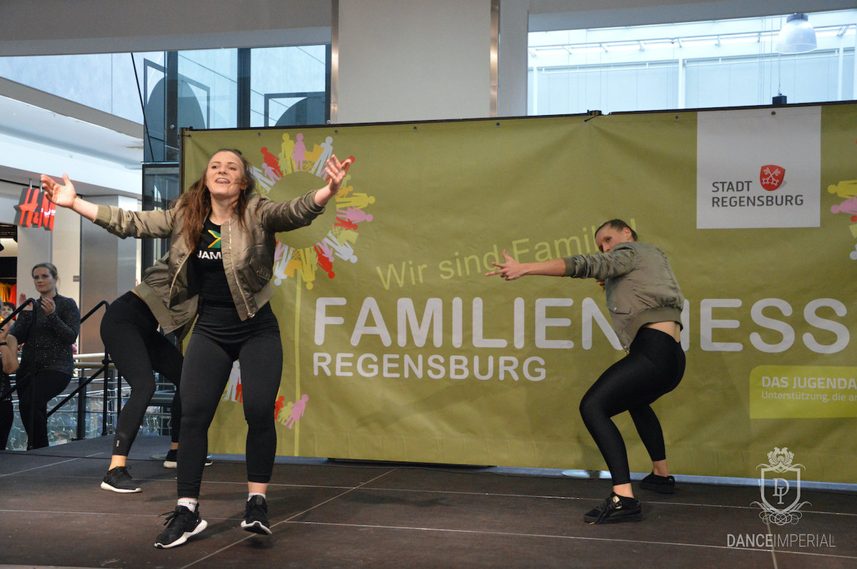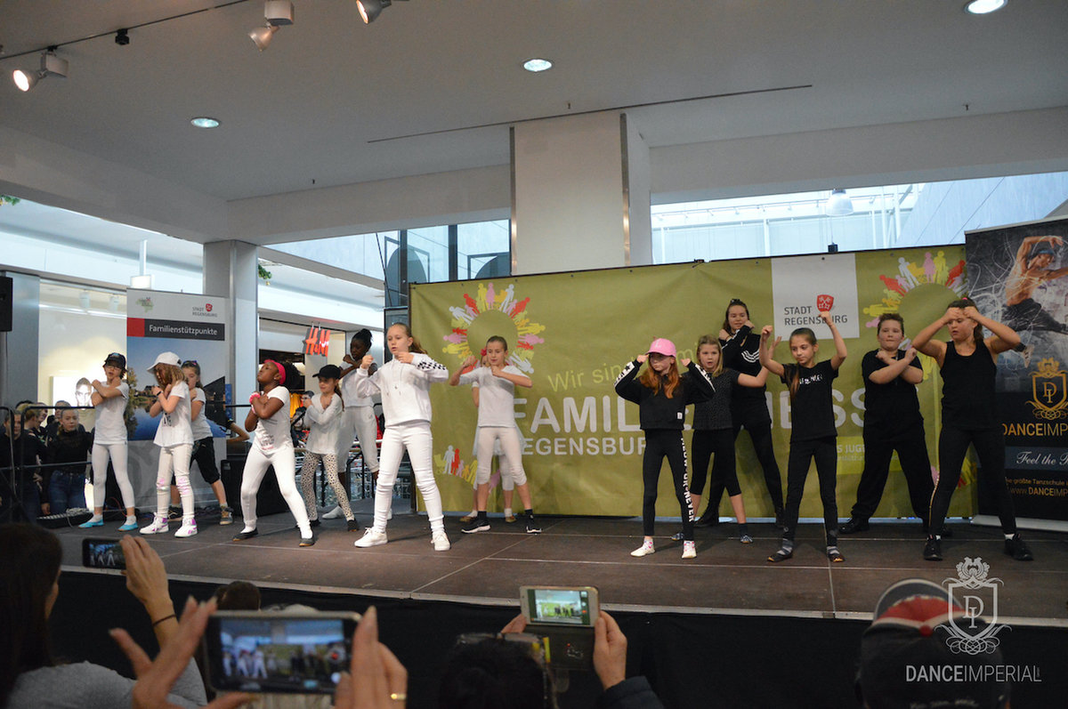 Zum Familientag im Donaueinkaufszentrum ist ein Teil der Solotänzer*innen des DANCEIMPERIAL dort aufgetreten. Auch unsere Trainerin Maggi hat eine kurze Choreografie getanzt.